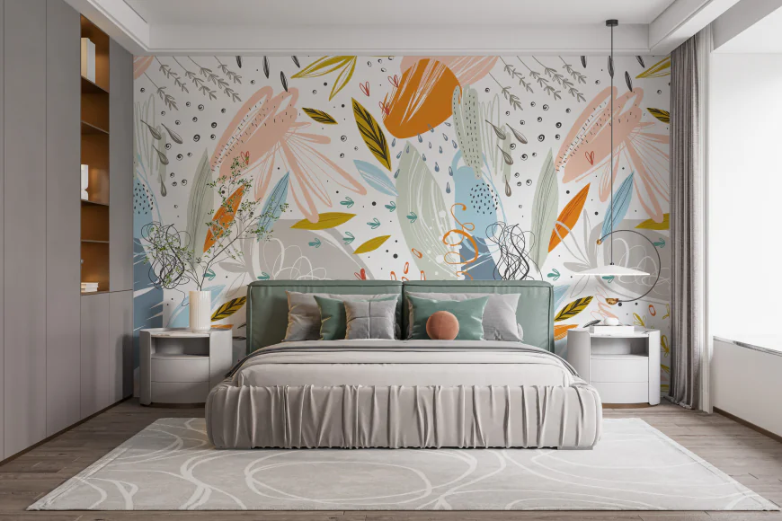This is a surprising trick that designers often use: sometimes a very large pattern is better than a medium one. A mural-style paper on a single wall can give a powerful sense of depth. A jungle wallpaper for walls, for example, that shows a landscape or large-scale leaves can draw your eye outward and far away, making the room feel deeper than it is.