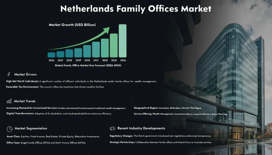 The keyword “Netherlands family offices market” is important as it reflects the rising need for personalized wealth management, investment diversification, and long-term financial planning. Family offices play a crucial role in preserving generational wealth, managing complex assets, and supporting strategic investments, making them essential for financial stability and economic growth in the Netherlands.